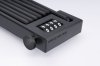 Zahlenschloss mit vier einstellbaren Zahlenrädern, Kunststoffoberfläche schützt den Rahmen vor Kratzern, speziell gehärteter Verschlussbolzen, rostfreier Hochleistungsstahl, geprüft auf mechanische Festigkeit, Eis-Spray getestet, Sägeschutz, abnutzungsresistent, schadstoffarm zertifiziert, Halterung mit zusätzlicher Klettverschlussanbringung und zwei M5 Schrauben