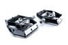 leichtes Click-Pedal mit beidseitigem Klick-System, SPD-kompatibel, CNC-veredelter Aluminiumkörper und CrMo Achse, angefaste Kanten für erhöhte Bodenfreiheit in Kurven, große Standfläche, extrem flache Bauweise, 16 austauschbare und einstellbare Pins, gedichtete Industrielager