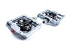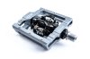 Klick-Pedal mit beidseitigem, schwimmend gelagertem Klick-System, SPD-kompatibel, CNC-gefräster Aluminiumkörper und CrMo Achse, große Standfläche, flache Bauweise, sieben austauschbare und einstellbare Pins pro Seite, gedichtetes Patronengleitlager und zwei gedichtete Industrielager