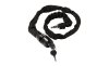 Sicheres Kettenschloss mit extra sicherem Schließzylinder und Schnellverschluss. Die Kettenglieder sowie der Schlosskörper sind vor Korrosion geschützt. Zudem schützen Überzug und Gehäuse vor Lackschäden.