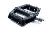 Die leichten Flat-Pedale sind aus Aluminium hergestellt und werden mit einer CrMo-Achse verbaut. Die Pedale werden mit hochwertigen Lagern gelagert. Die Anti-Rutsch-Pins sind austauschbar und bieten besten Halt am Fahrrad.